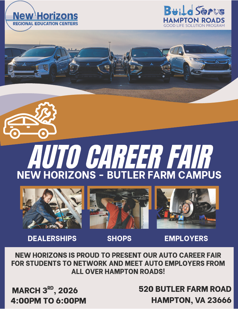 We are excited to announce our upcoming Auto Career Fair on March 3rd at the Butler Farm Campus (520 Butler Farm Road, Hampton, VA 23666) from 4pm-6pm.
